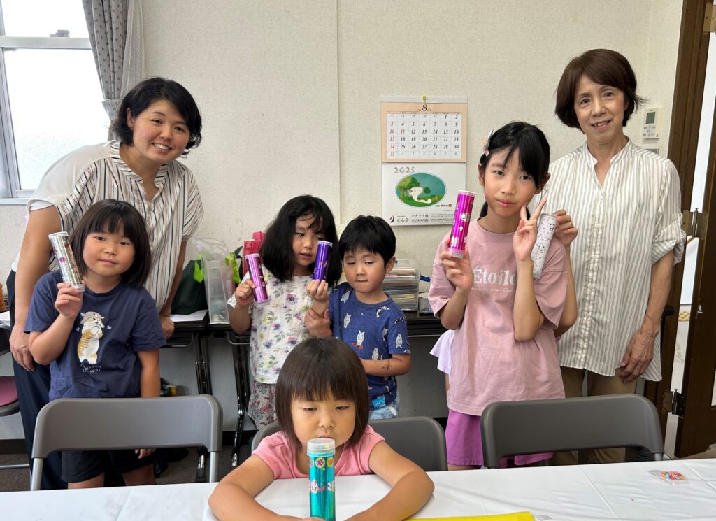 夏休み中、24名の子どもたちが参加した万華鏡作り。鏡を組んで筒にセットをしたら、